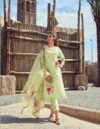 Completing the outfit is a sheer dupatta with delicate floral accents, enhancing the overall elegance of the ensemble. Designed for comfort and style, this suit is perfect for any event, from family functions to office parties.