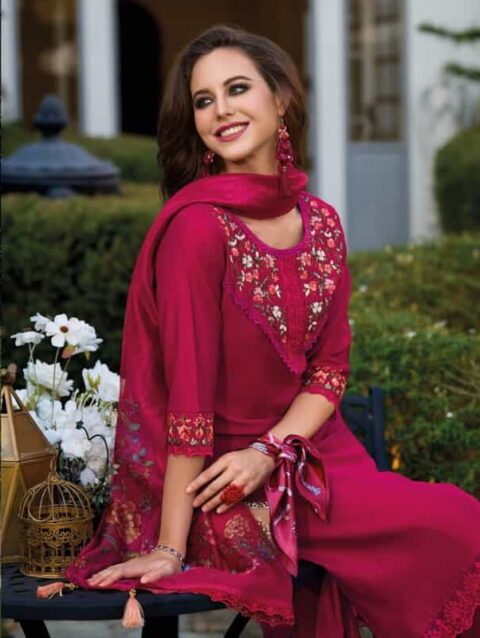 Accompanying the outfit is a sheer dupatta with floral accents, enhancing the overall grace and elegance of the ensemble. Crafted for comfort and style, this suit is perfect for any event, from office gatherings to festive celebrations.